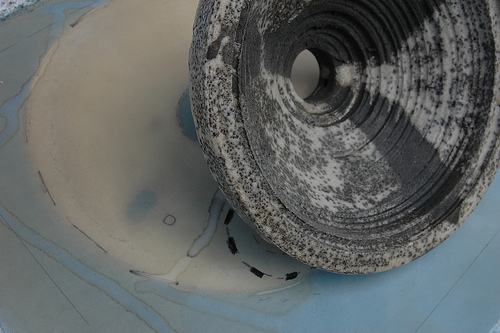 Part of a series of speculative drawings with objects, interested in bringing these elements into architectural forms and surfaces, maybe textures. Recent reading of “Natural History” which documents the exhibition “Archaeology of the mind ” which centres around the architectural practice of Herzog and de Meuron has prompted me to reflect on their comment
