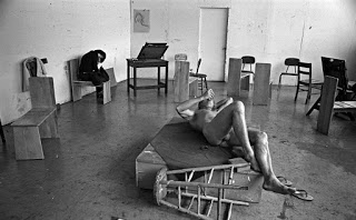 An assemblage of images,collage, drawing and texts and other disparate elements.
