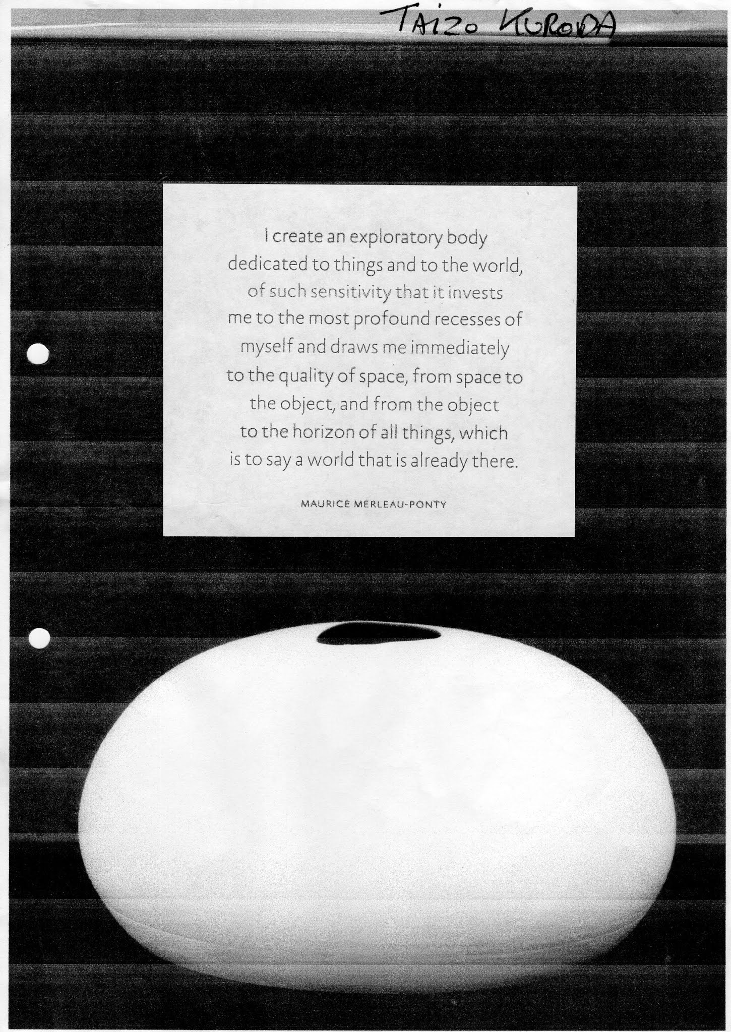 In sensing a pots interior from its surface, we are as it were in some intimate tacit correspondence with its spatial sensing centre. We become known to it through its maker’s creative gesture of innemess. This anthropological inner space linking us to the potter is both sensual and distant; its vacancy allows us dwell in the maker’s absence.