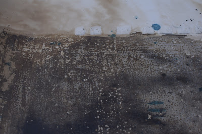Empty and eroded stone mullion windows/ancient lights, architecture framing its un-making worn, broken and repaired flooring surfaces, ceramic and stone.