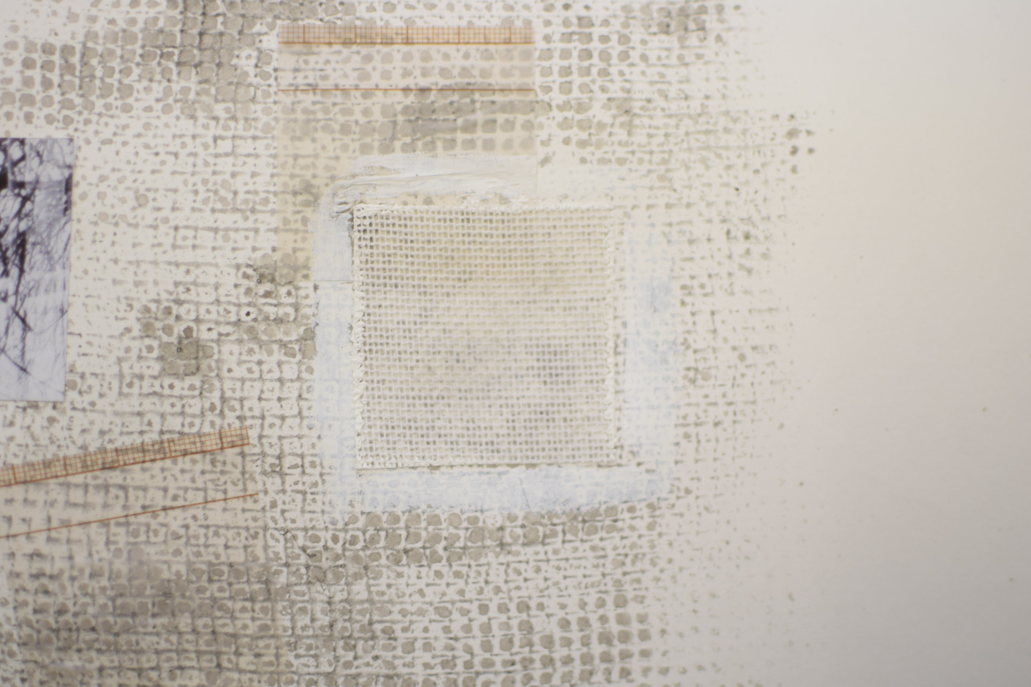 Cell, Court, Domain, Field : Layered paper, paint, and absent objects.