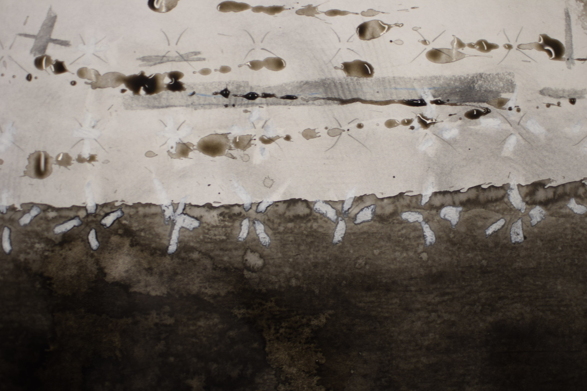 Anthropological Landscape : Drawing from archaeological dig, liquid light, field chalk, charcoal.