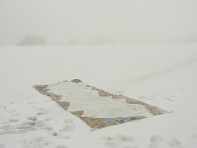 The Drawing strangely or ironically displays values in a state of stasis, now lost with its sister. The cyanotype “sea” with its fluidity bleeding into the porosity of the news print. The “ streams” of residues washed from other areas are now deposited into the interior space where they have collected finally to evaporate leaving their watery remains. Only the clarity of the “permanent” marker pen remains untouched by any entropic activity. Objectively the drawing materials has slowed down to the point when one might grant it a measure of completeness. Its particular temporalities now exist within the interactions it can manifest from others, other things, other situations that are drawn into its proximity, its particular field of intuitive reverberations, its unique dwelling place.