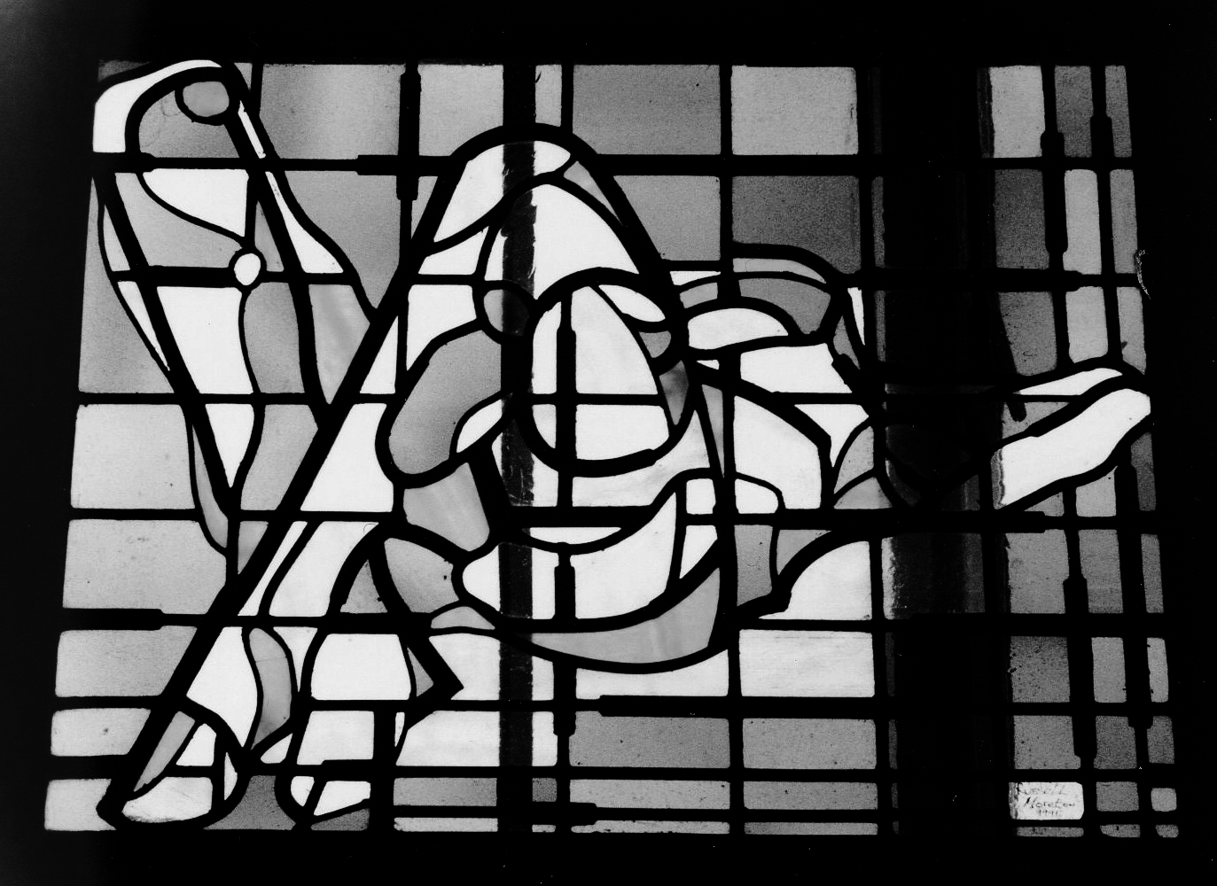 Sandblasted opaque flashed glass with black paint, 33 x 55.3cm.