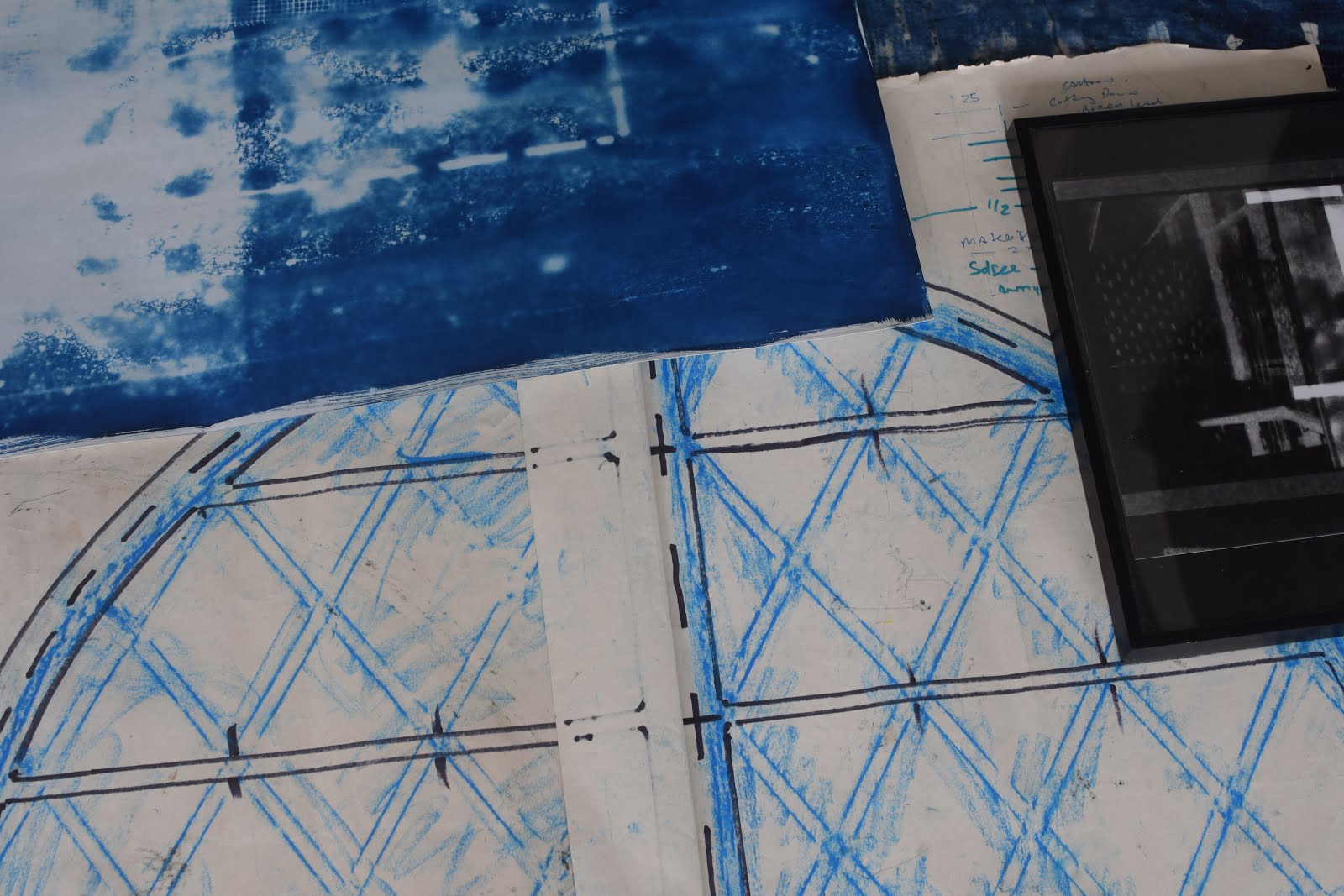 Cyanotype material,objects on canvas.
