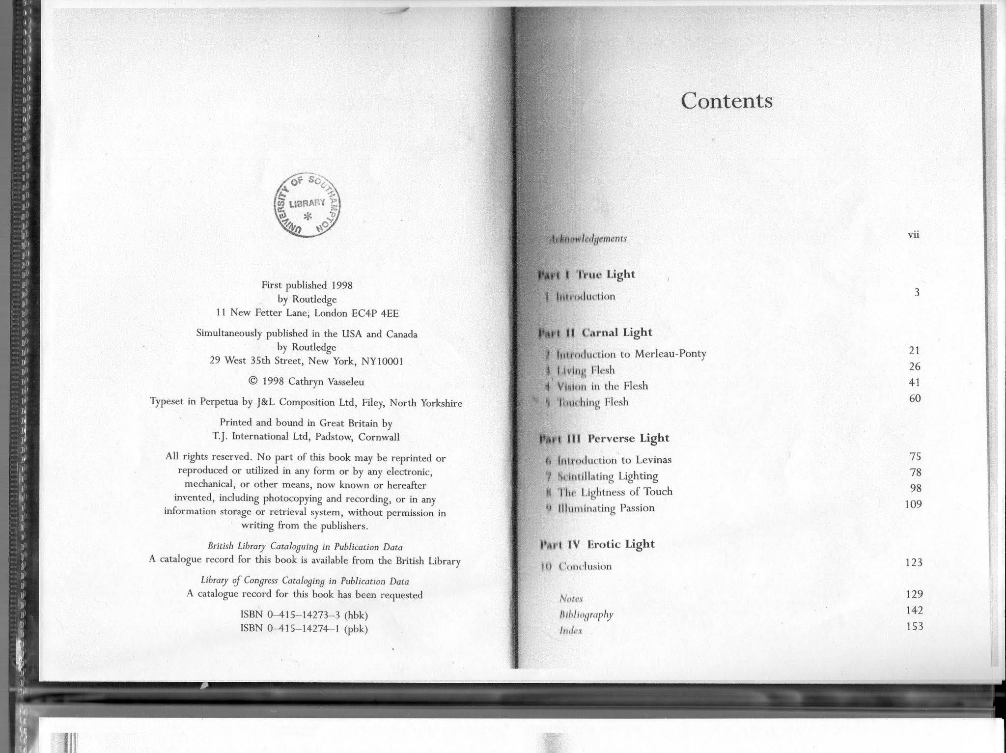Textures of Light : Vision and Touch in Irigarey, Levinas and Merleau-Ponty : Cathryn Vasseleu.