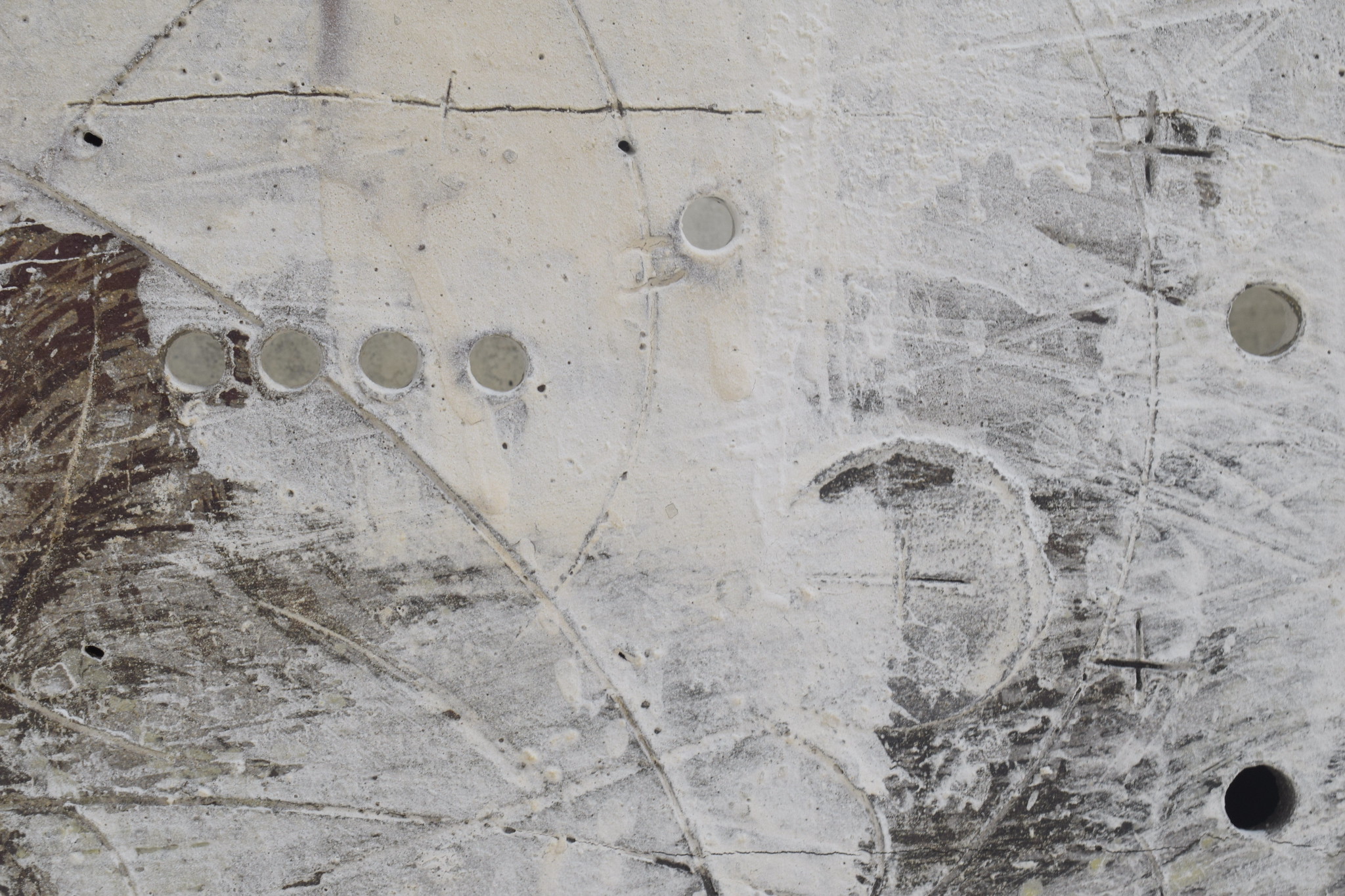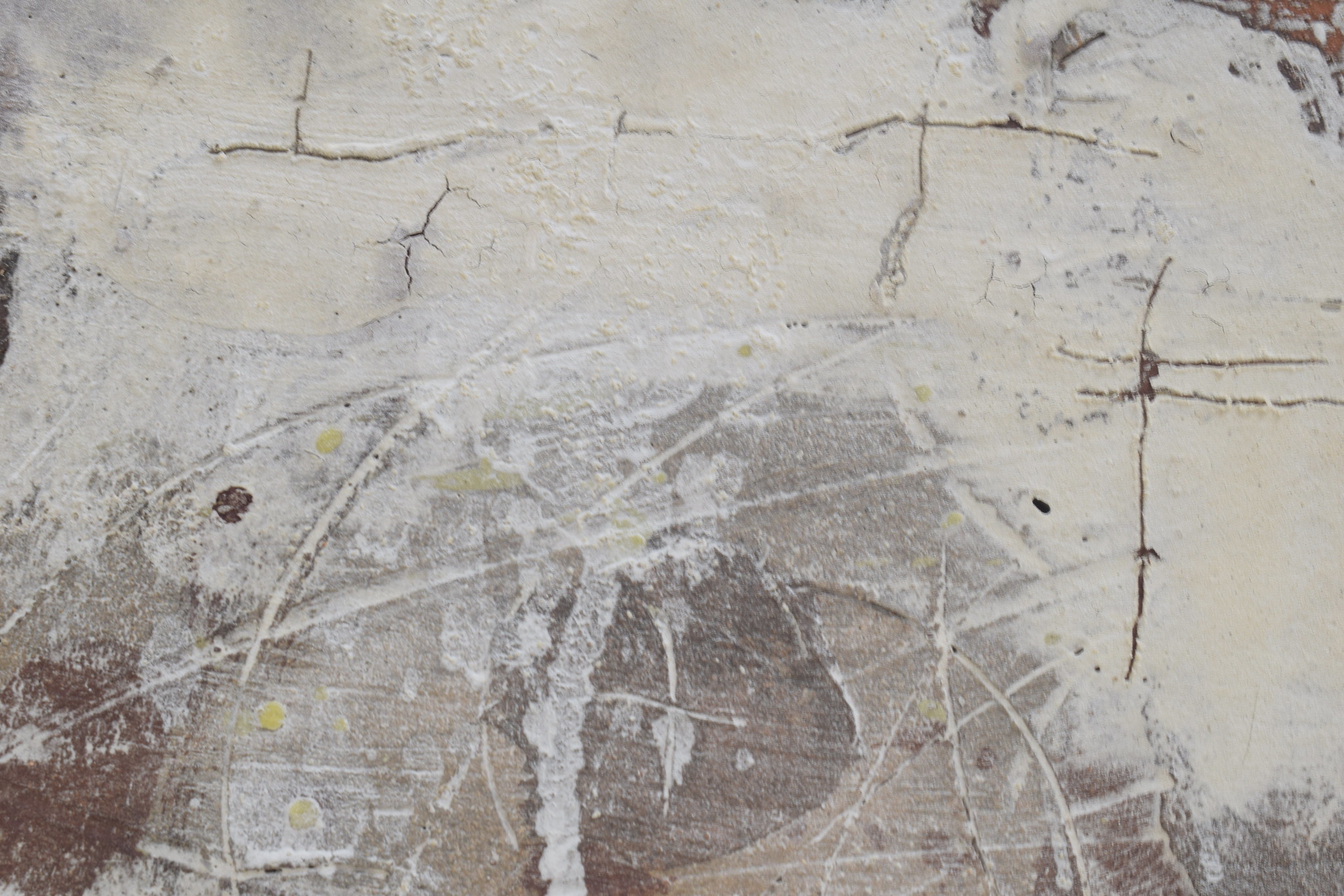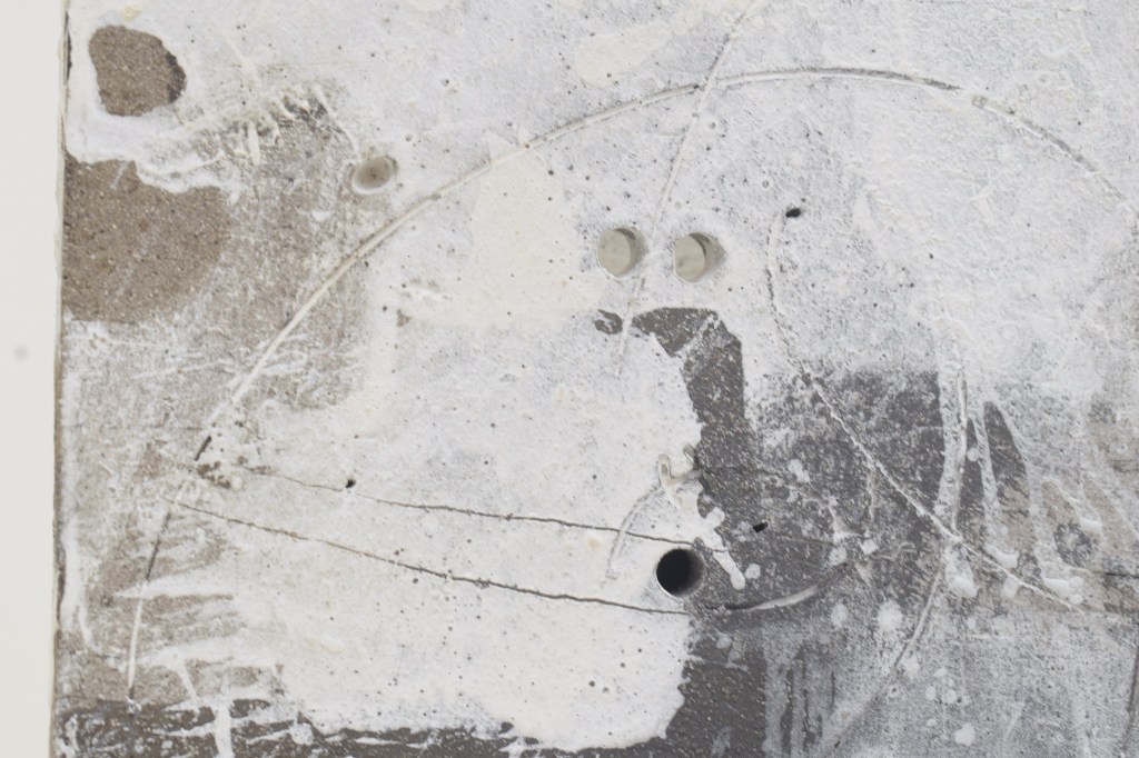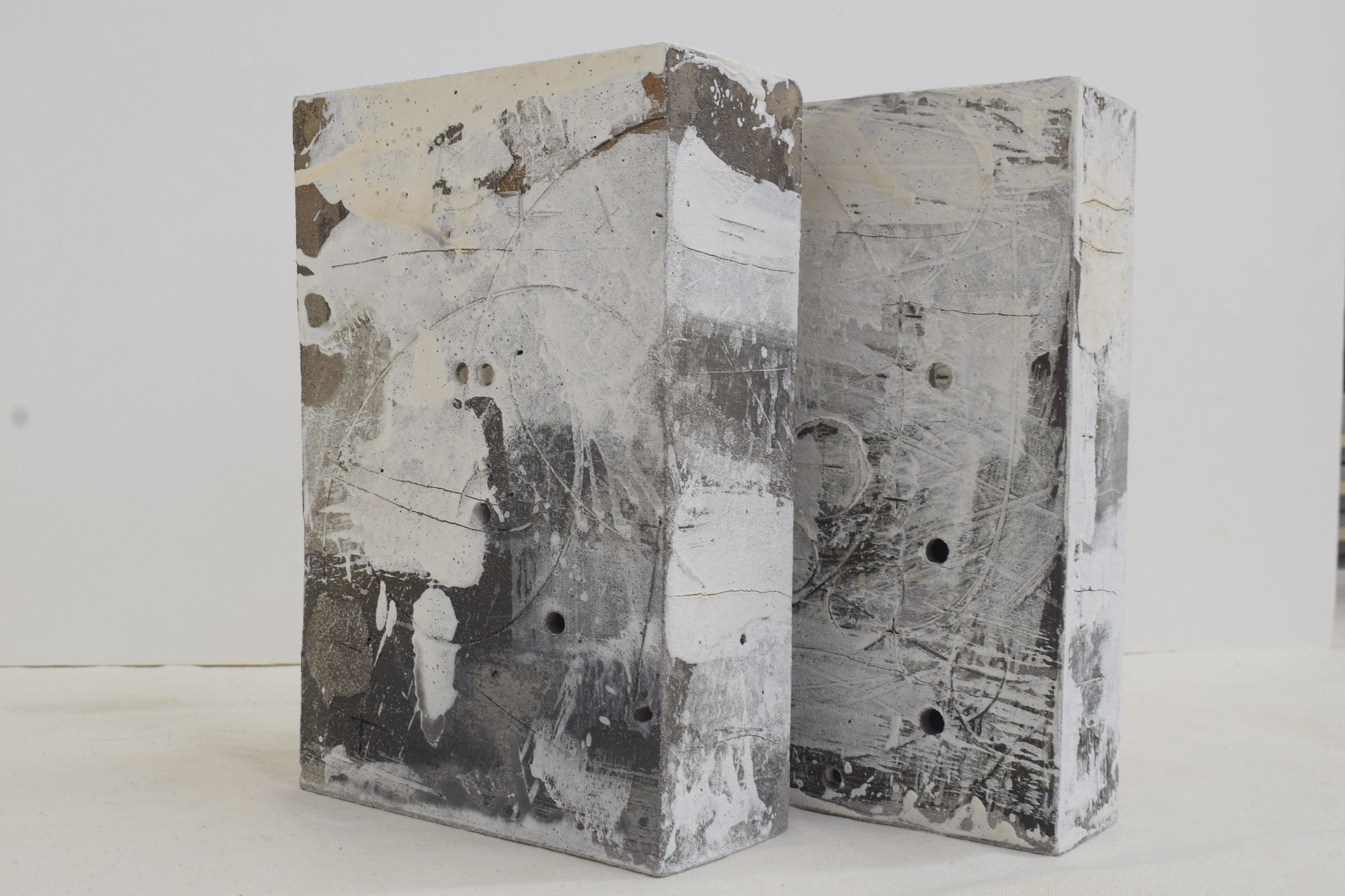 The raw, distressed appearance suggests an interest in material vocabulary and process-based inquiry.