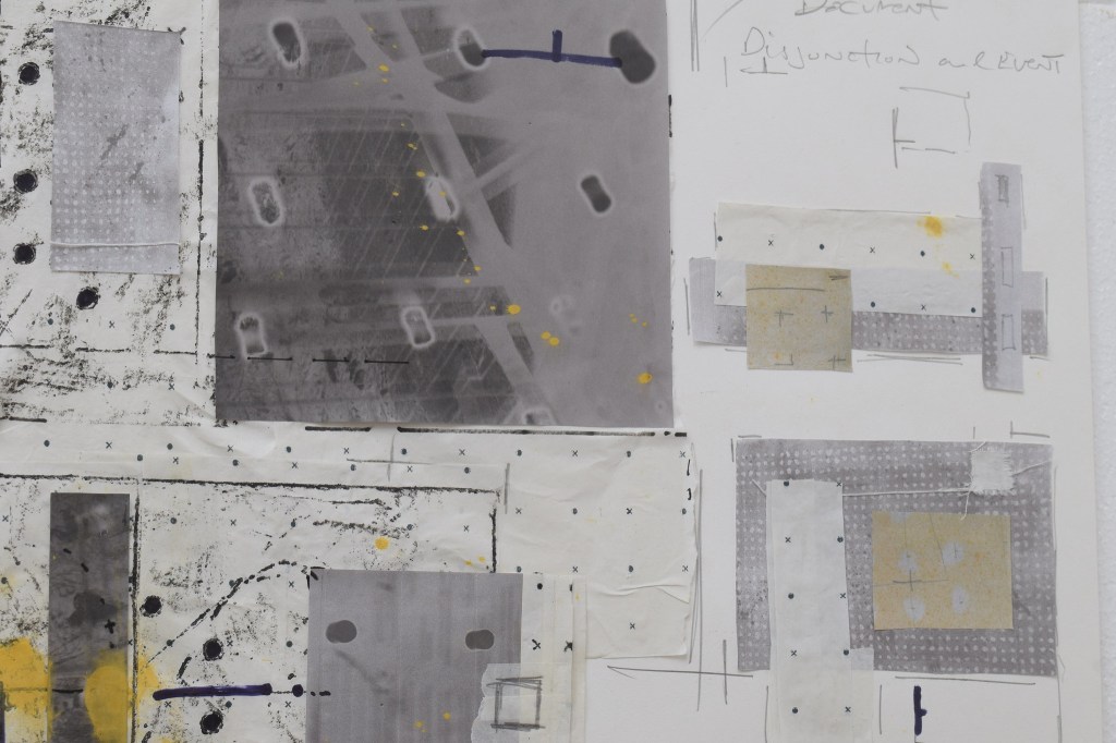 The artist uses materials to explore a sense of place and time, with the act of drawing adding a performative element.