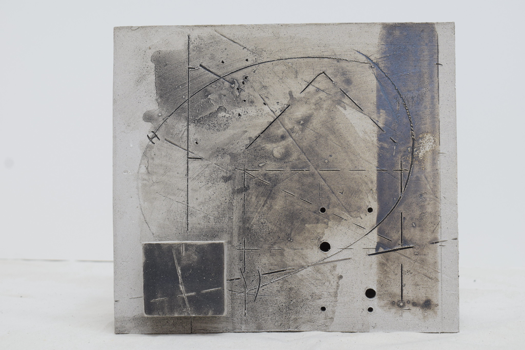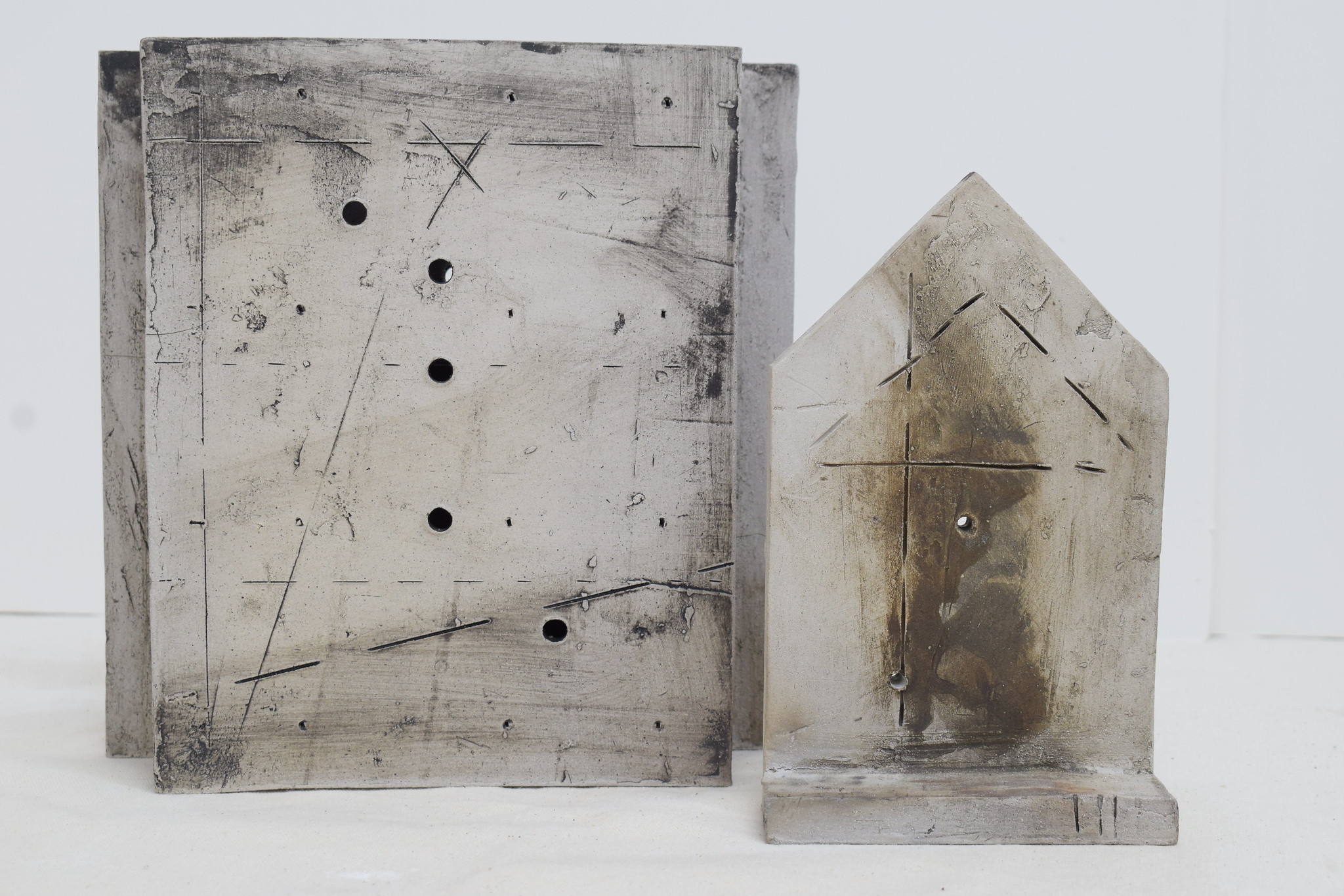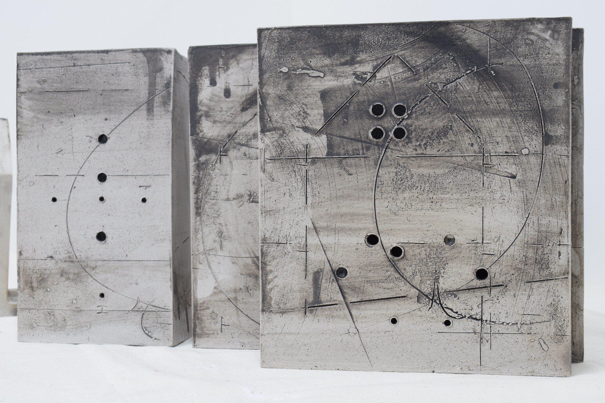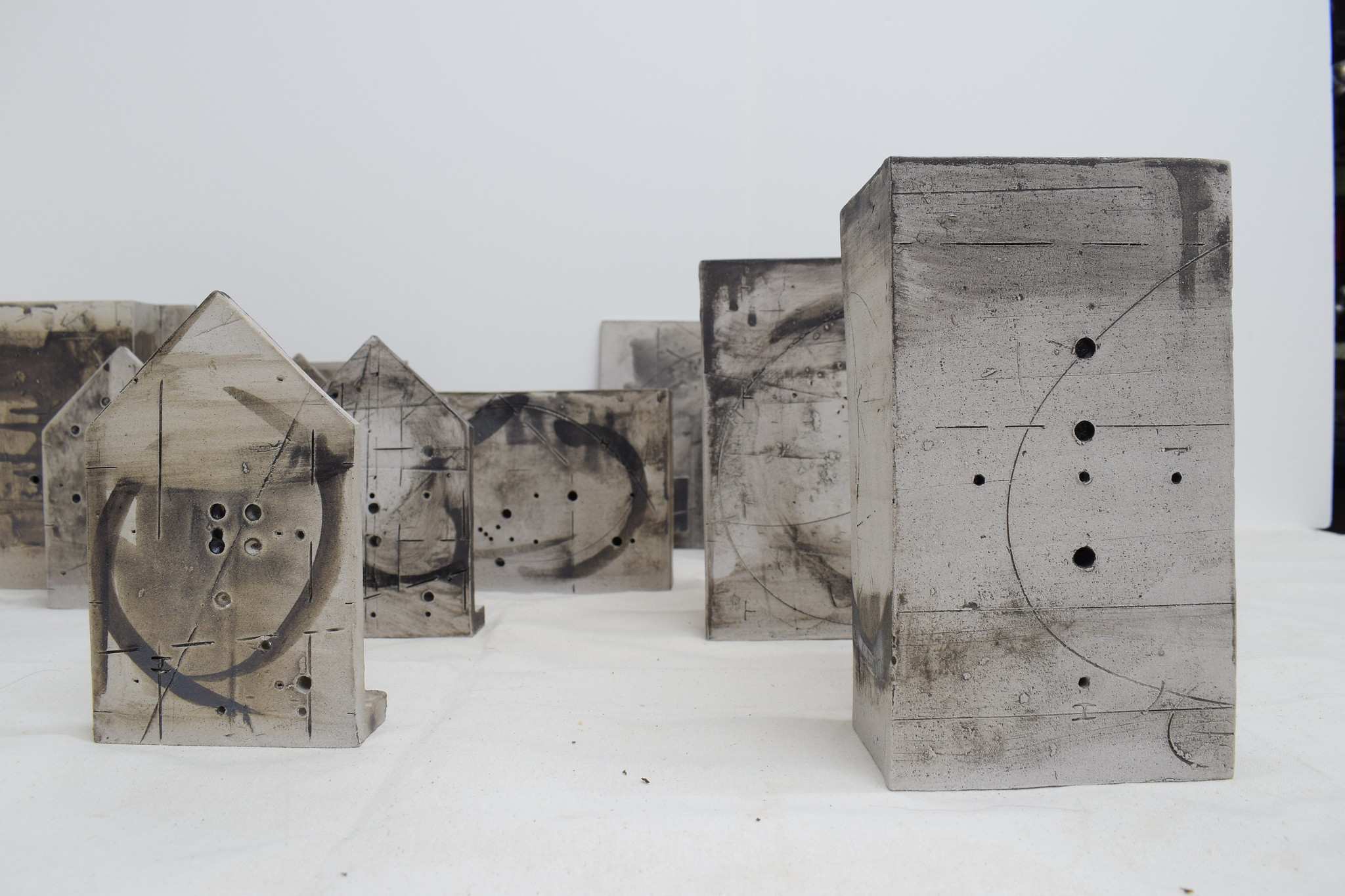 Slab built ceramic from templates and drawn annotations added throughout the construction process.