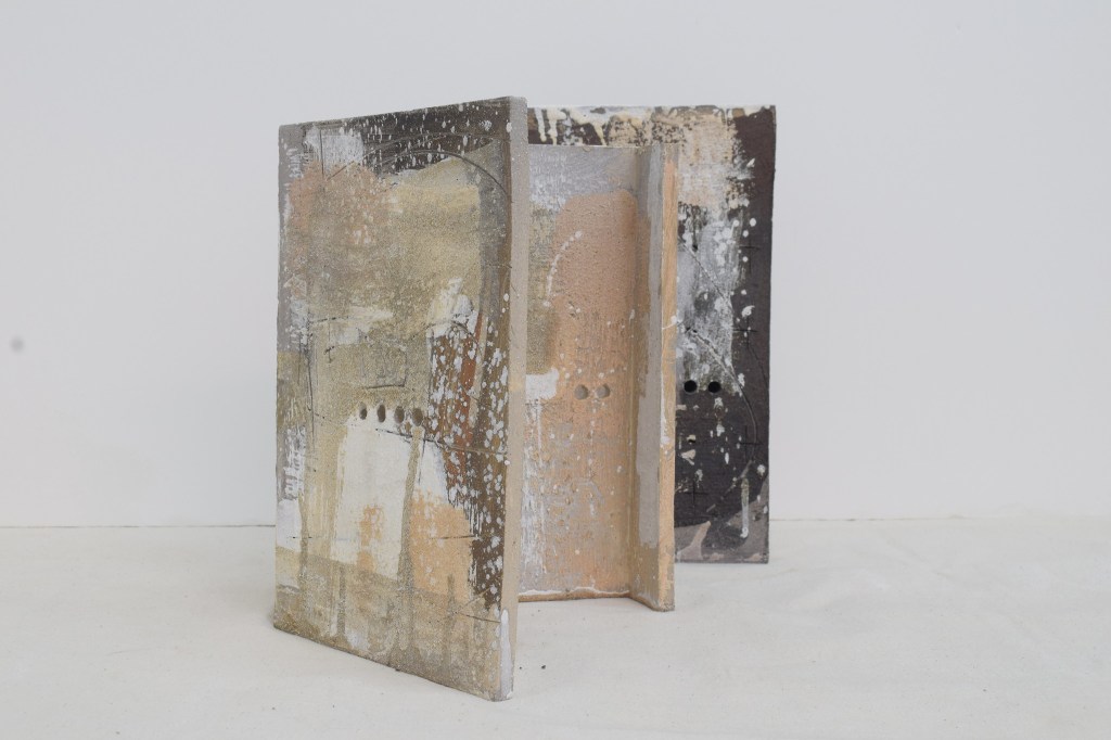 The works explore themes around “making” and the interconnectedness of interior spaces, using clay as the primary material.