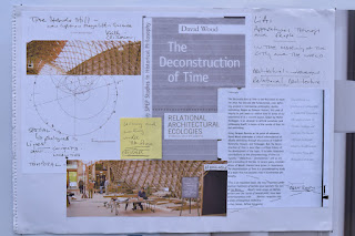 Both the Scriptorium and The Theatre Of Research exist only in the form of the exhibition presentation. What they singularly of together propose can only be imagined through their manifested form as static objects placed within a built structure that loosely references architectural concerns and materials. They appear diminished and assigned to the voyeuristic gaze of the visitor that is equally curios and dismissive. These objects and the interior spaces they promoted seem stilled and stalled, as much they appear beyond reach as if the authenticity of their materials and construction have some how been subsumed by their stature and scale. The issues and qualities of which they are attempting to speak of seem reduced by the hegemony of vision, there is little hapicity and time to encounter, only it seems by investing narratives can we begin to re-enact the spatial encounter.