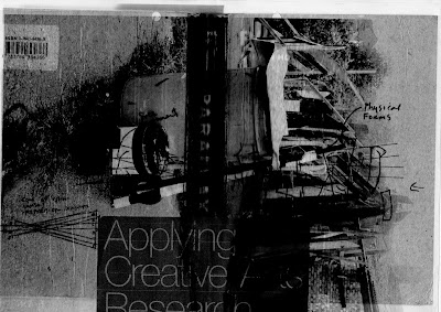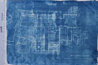 The Scriptorium began through a research of both architectural themed texts and documentation of the site, and creative practice involving photography (digital, analogue and film) art practices of collage and drawing. The many visits promoted my own subjectivities to the site and these were also frequently subjected to change by the intervention of others in unexpected ways, these social intrusions by other revealed the very boundaries that the historic site engenders, some playful other malicious. These extremities within the social order of the visitors became problematic in designing for the site itself. An earlier proposal to host a Symposium centred on the Arts and The Humanities, that would use the Abbey and its surrounding ground appeared to be a project of vast diversities and logistics better suited to a cultural project through arts management and funding. As the project developed certain creative methodologies around particularities of the site itself began to appear, the notion of palimpsest being one of them. This promoted the idea of a reading room, as an ephemeral interior space that gathers up the experiential values of ‘ruins’ and re-enacts them as a site to explore the architectures of images. It became apparent that ‘palimpsest’ could be both a visual surface of erasures, earlier markings partially over written by newer ones ‘annotations’ and it could be a scaffold of developing ideas clearly visible merging as adaptations into the very usage of the site.