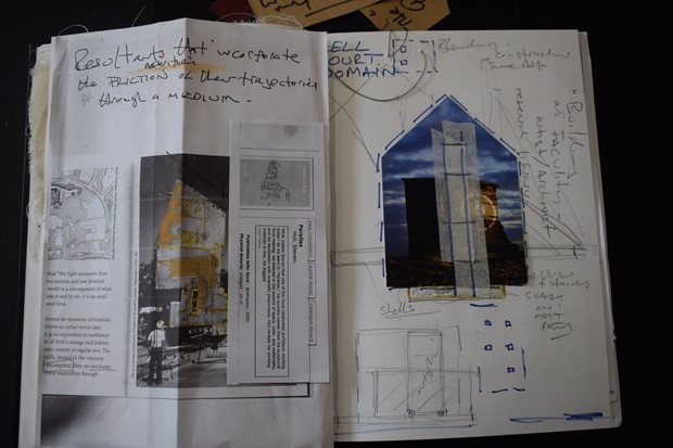 studio, metaphysical space, collage, Palimpsest, Cristina Iglesias, Steven Holl, Jackie Leven, Tim Ingold, Julian Stair, drawing, sprays, Jane Bennett, Russell Moreton, Lucio Fontana,